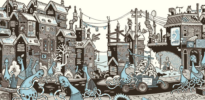 Two of our favorite Moonies unite to create these monstrous illustrations. To be featured in Quarter Moon.