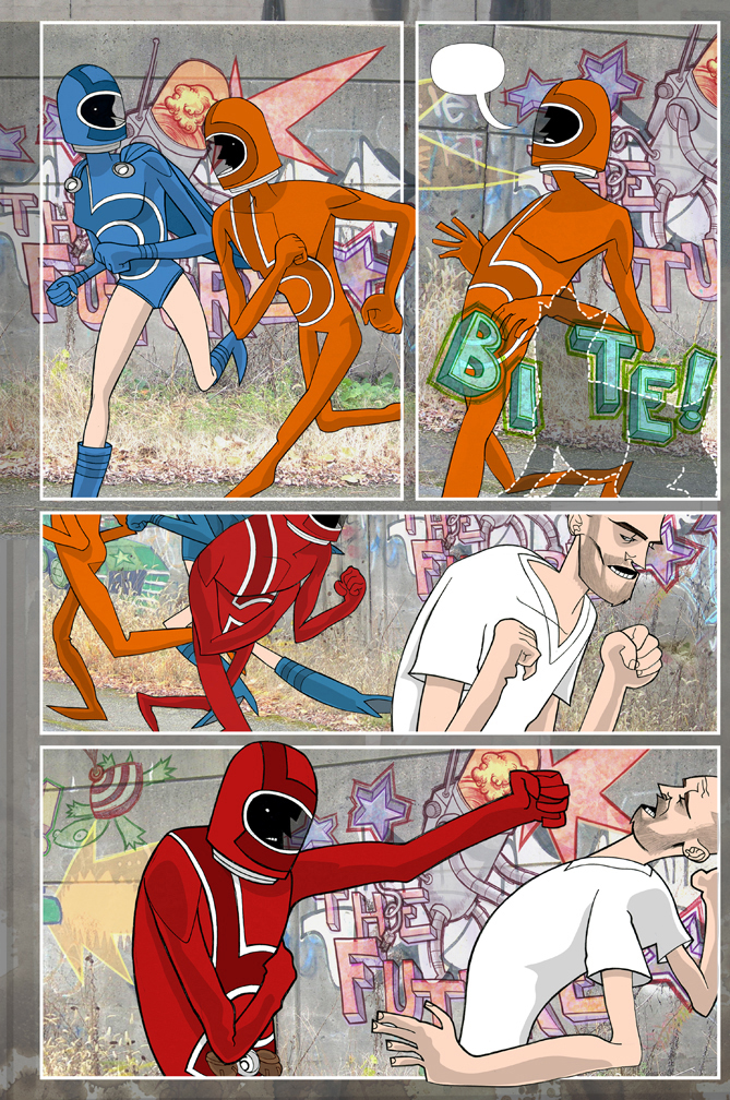 Jasen Lex’s slick acrobatic cartooning tells a tale of low-rent superheroes. The cover says it’s just a preview, but this 48-page romp feels like a first issue to us.