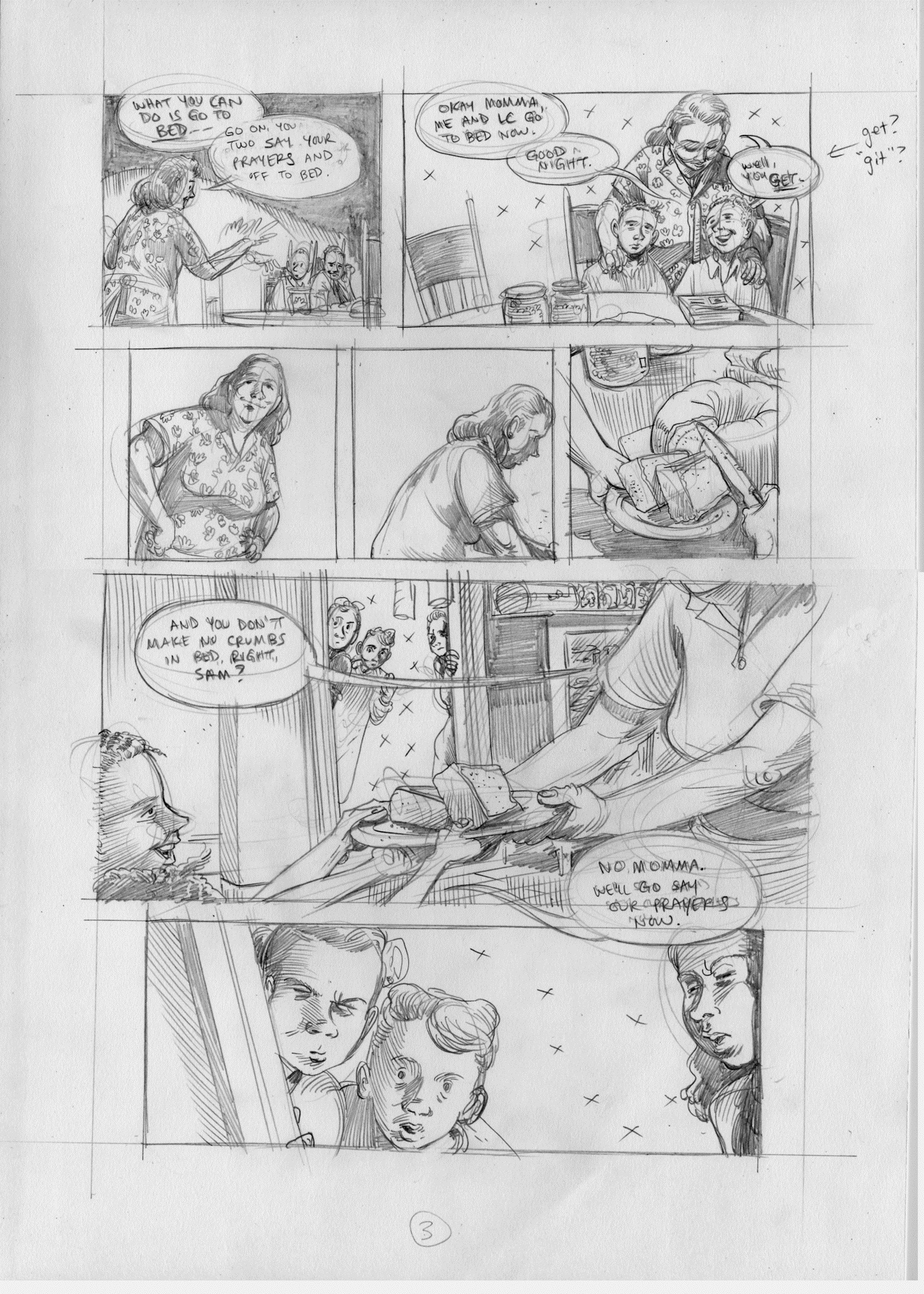 nate’s pencils set the tone and perfectly captured what we were going for. jason and i holed up in a crappy hotel in south jersey one weekend and laid out the structure of the book, including a perfectly realized ending. nate kept drawing, and i was set to finish up the script. then a guy i loved killed himself and i was lost for awhile, and the last thing i could do was write anything, and nate had other books to draw, and sam went on the shelf. here’s what nate did for the opening scene…