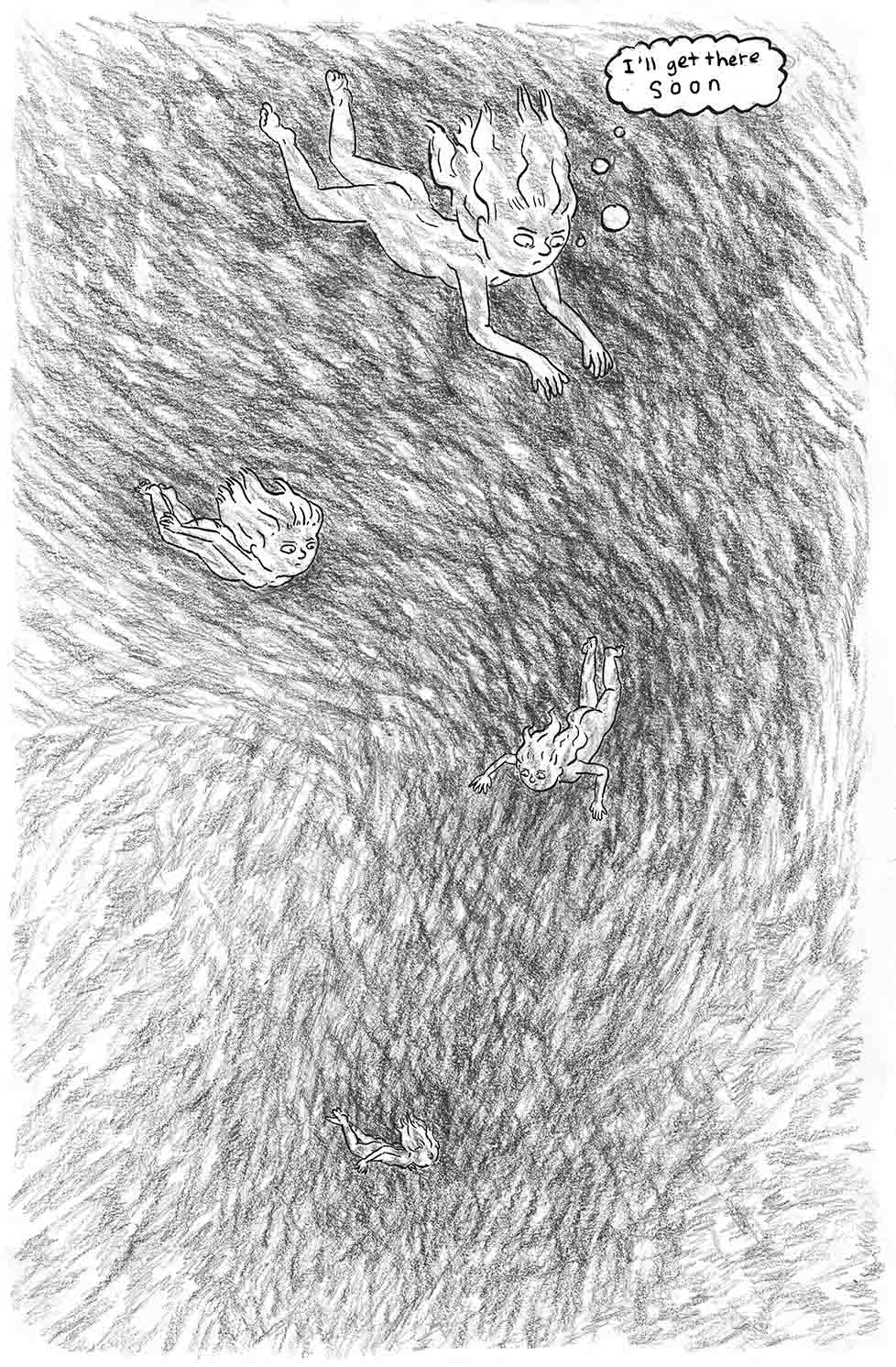 Daryl Seitchik’s lyrical book starts with eleven pages of a girl drinking a glass of water, then tumbles gloriously into a dreamy ink-drenched ether.