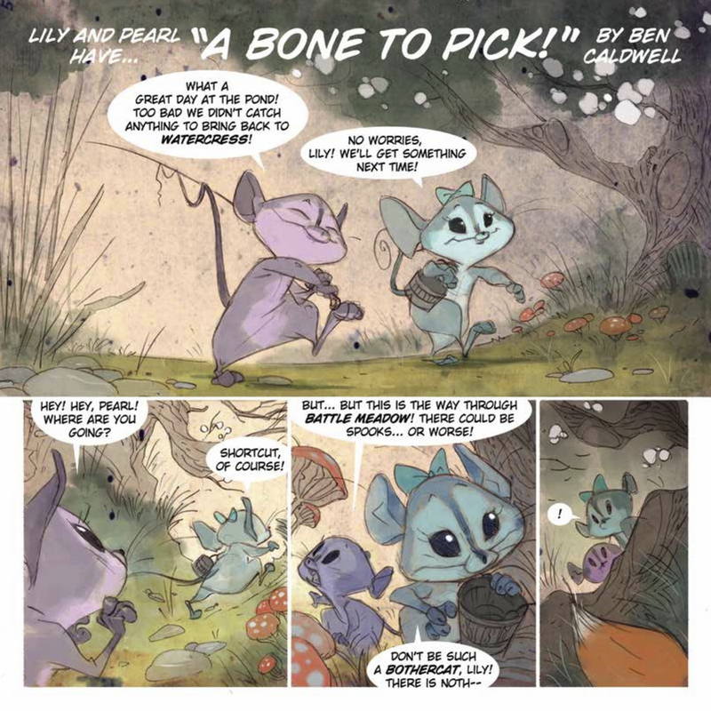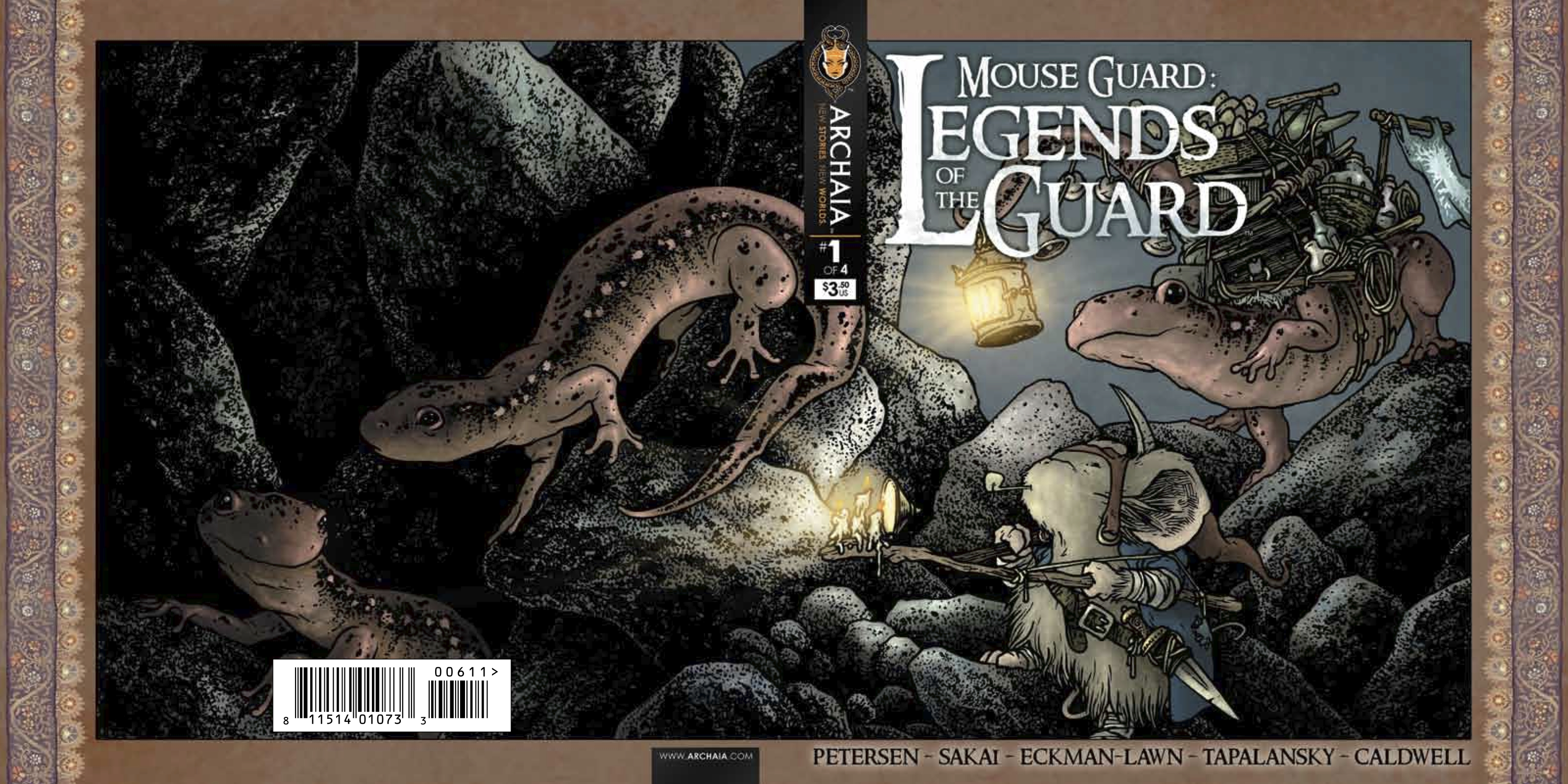 mouse guard: legends of the guard #1 : david petersen’s newest anthology series spinning off of the charming all-ages MOUSE GUARD starts off strong, with petersen providing a framing sequence around some wonderful watercolor pages from stan sakai, a bang-up job by philadelphia’s own alex eckman-lawn, and a superbly delightful turn by ben caldwell.
