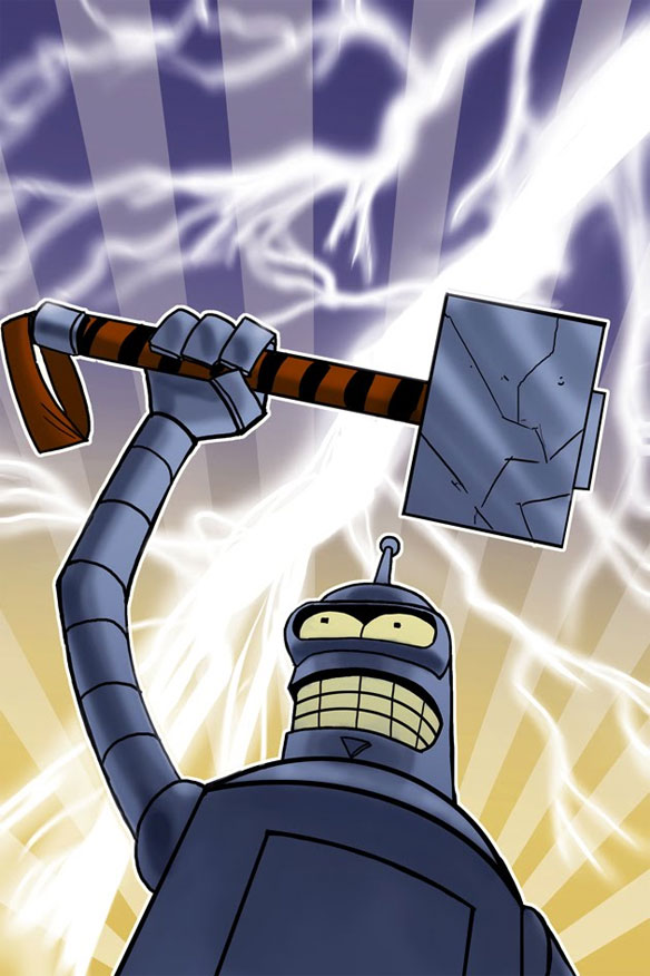 The sleek & versatile cartoonist Jarreau Wimberly brings the thunder to power you through to the weekend. My favorite is this Bender-Thor.