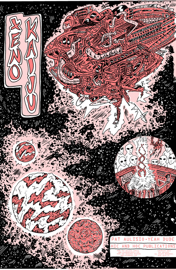 Pat Aulisio’s unadulterated monster romp, rampaging across an over-sized newspaper.