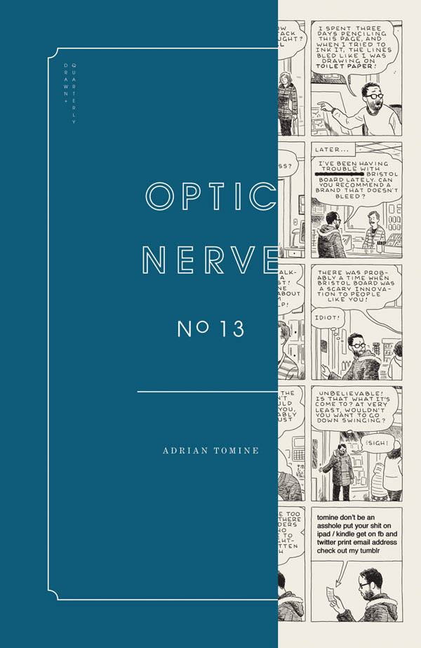 Josh: After spending a couple of decades carving his style down to the bone, whittling away every extraneous element, Adrian Tomine emerged with one of the most admirably spare & elegant styles in all of comics. Having achieved what’s looked like a total command of his voice, he’s spent the last couple of years loosening up, bending his minimal cartooning into rounder, cuter shapes reminiscent of Dik Browne and Frank King. You can find some of the humane, conversational voice of a Jaime Hernandez comic in GO OWLS, the first story in OPTIC NERVE 13, which manages to be a warm and empathetic portrait of a total piece of shit and his frighteningly toxic relationship. Tomine is getting better and better, which is pretty remarkable considering he’s been one of the best for a very long time.