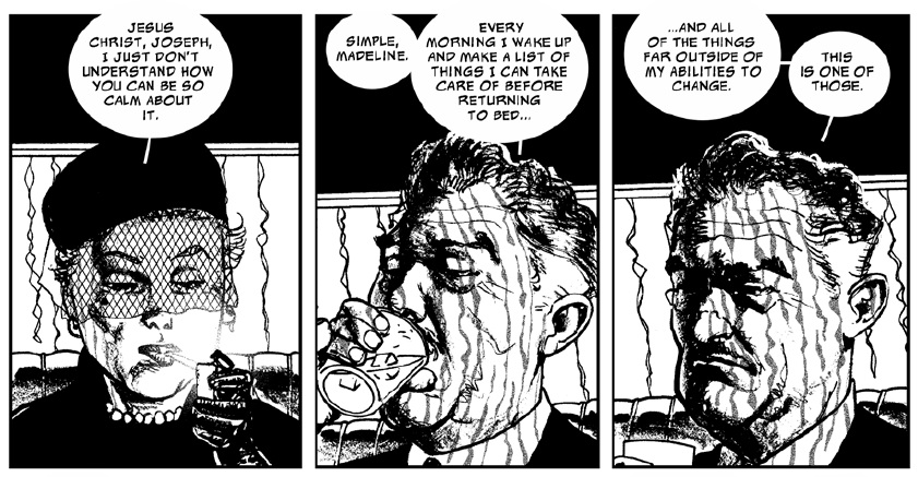 Raymond Chandler meets Paddy Chayefski in this grimy vintage mystery series, with Matt Fraction’s thoroughly developed dawn-of-television setting brought to seamy, smokey life by the vicious, scratched-out micron linework of Howard Chaykin.