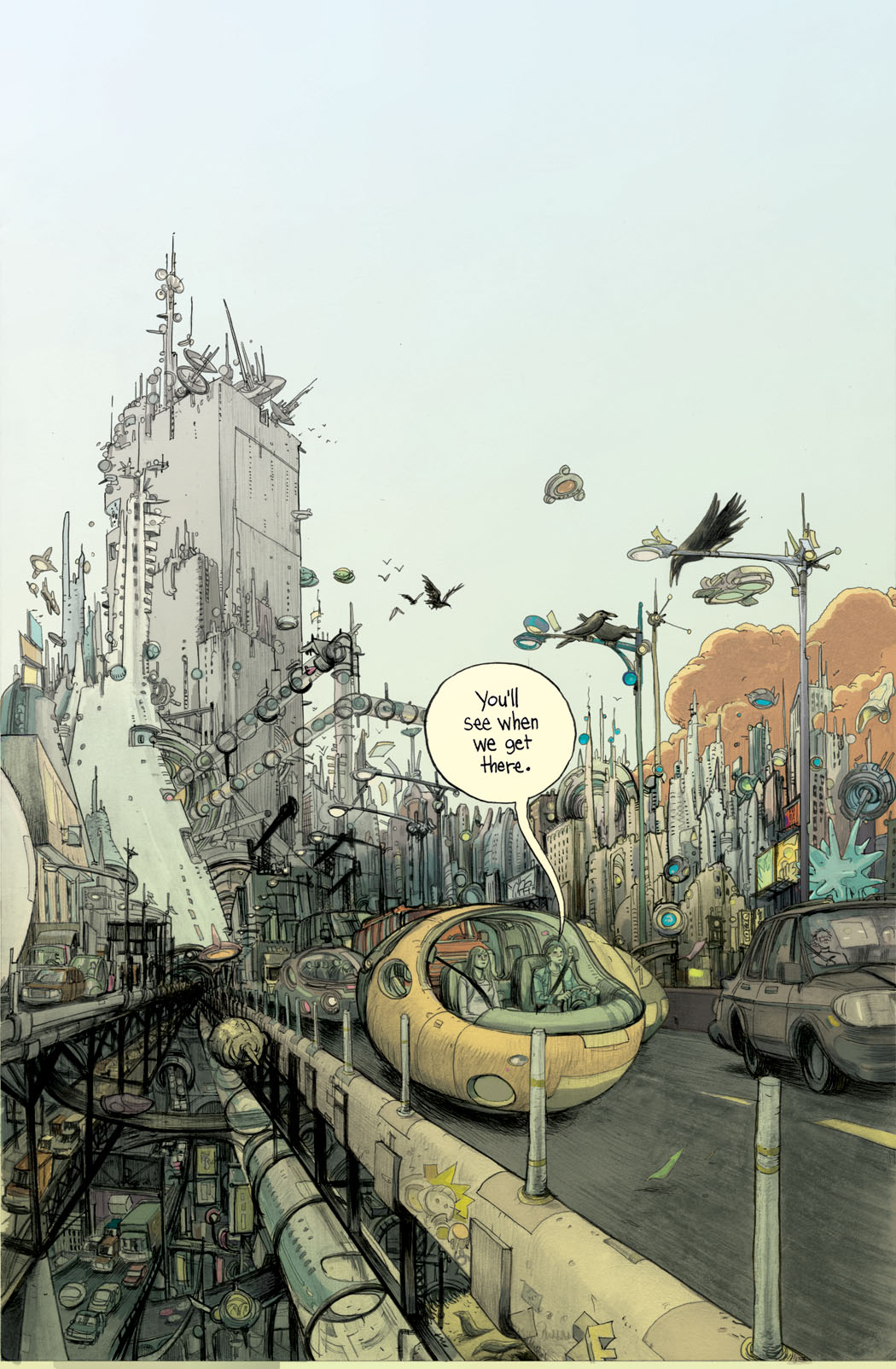 We’re close to wrapping the first installment of this mellow, big-hearted sci-fi road trip, to be serialized in DARK HORSE PRESENTS. We should all be so lucky as to take a meandering drive through a future dreamed & drawn by Chris Stevens and Farel Dalrymple.