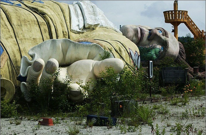 Ummm, a giant sized model of Gulliver strewn across the landscape right next to Japan’s suicide forest? A fun park in the Ukraine that opened and closed the day of the Chernobyl nuclear disaster? An abandoned Oz in the middle of North Carolina? We are definitely not in Kansas anymore.
