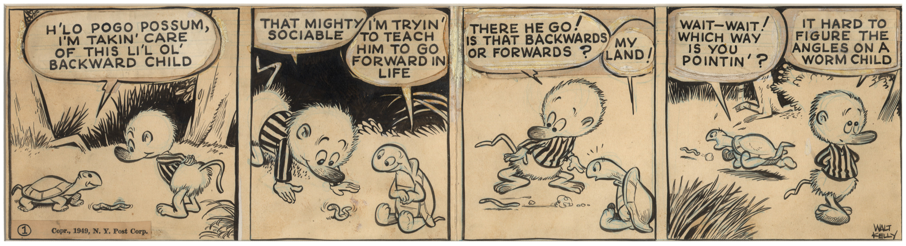 One of the most revered comic strips ever actually kicked off as a series of shorts in Dell’s ANIMAL COMICS. The beginning of a legend, almost fully formed. Viva Walt Kelly.