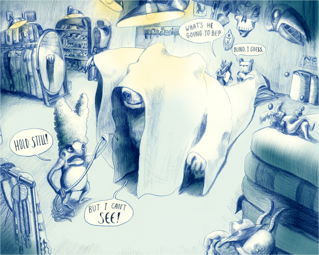 18. DANIEL ELISII creates comics in a language all his own — a guttural, poetic, slapstick voice of clicks and whistles.