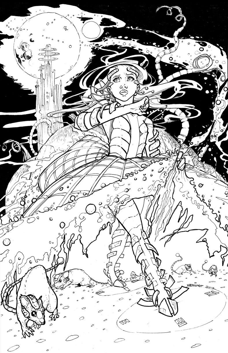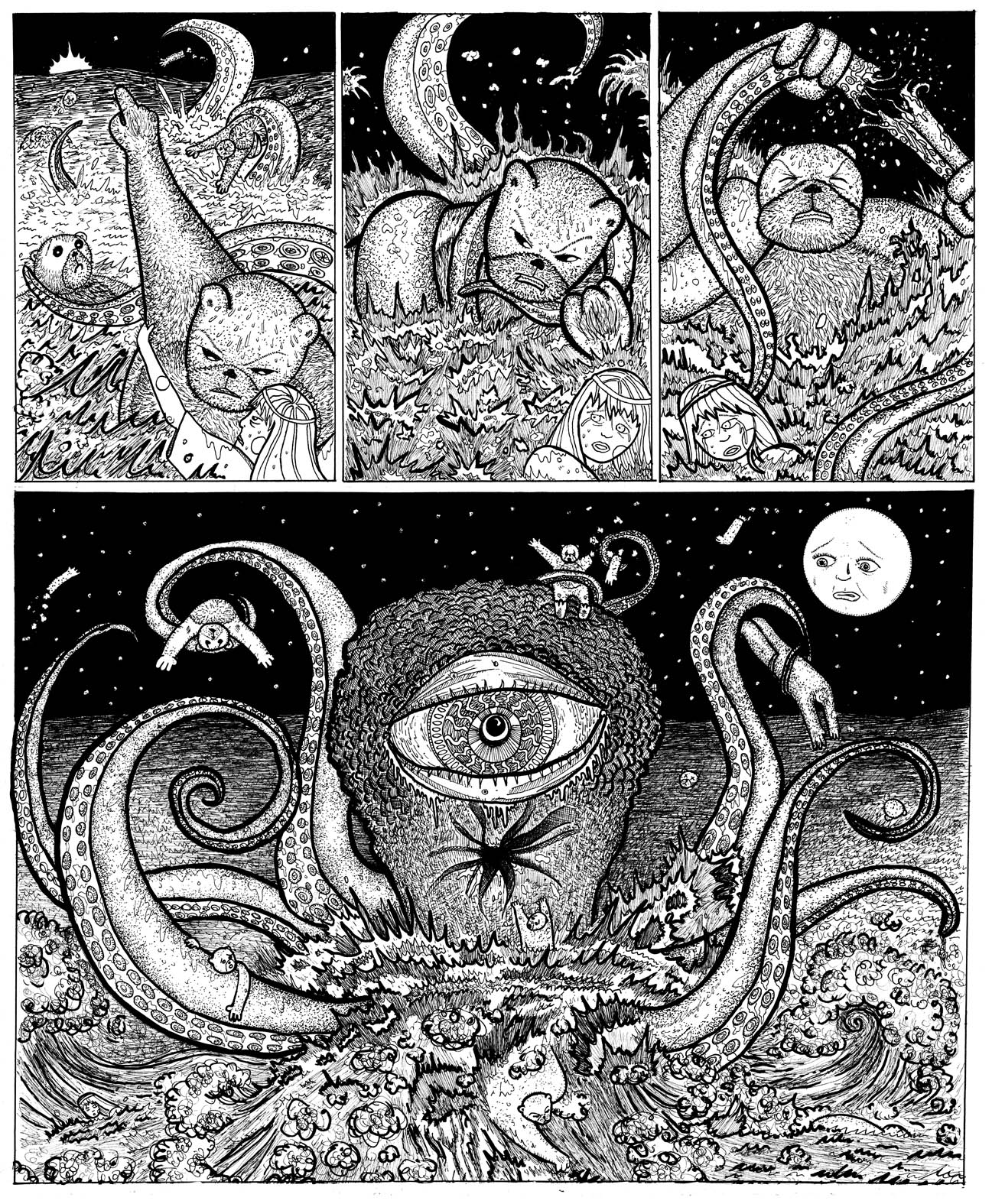 27. At last year’s Locust Moon Comics Festival, a guy came up to us with a penciled Nemo page he was really hoping we’d like enough to include in the book. It was a unanimous yes, and that guy was RAWN GANDY, whose slightly disturbing, Akira-inflected strip is a favorite among the creators in the Dream Another Dream.