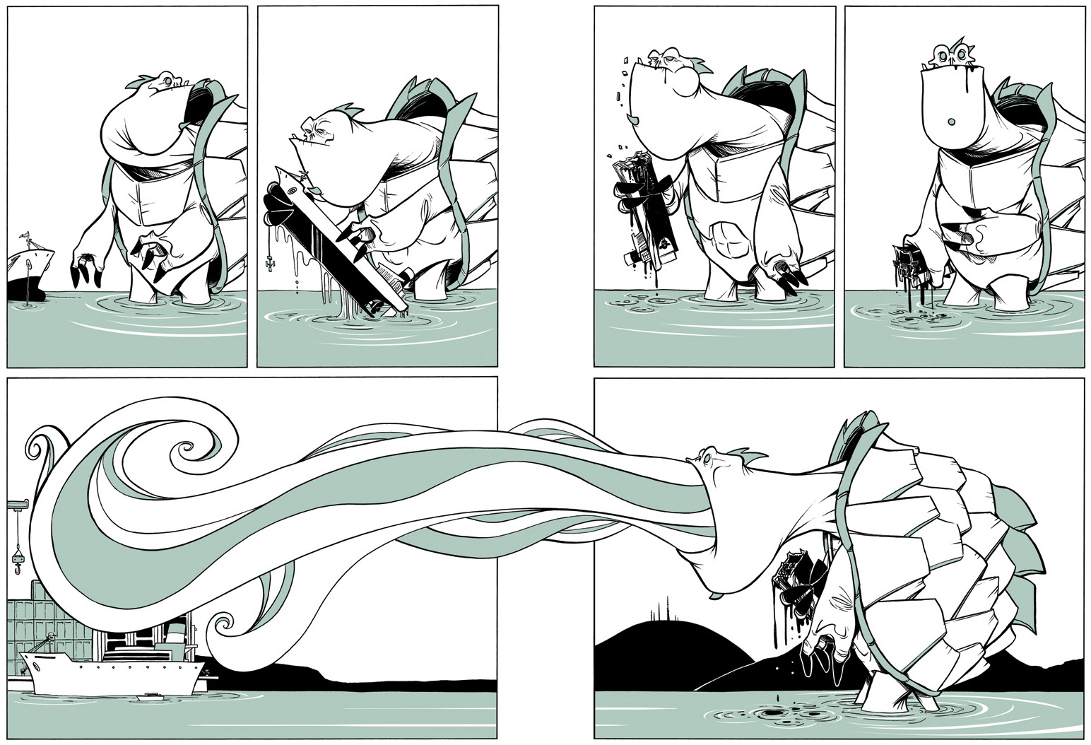 1. One of the best things about building this book was the mutual exchange between the creators and us, suggesting this person or that one for inclusion. Without Fábio Moon, we might not have found GUSTAVO DUARTE, whose whimsical style and classical line recalls the great cartoonists & animators.