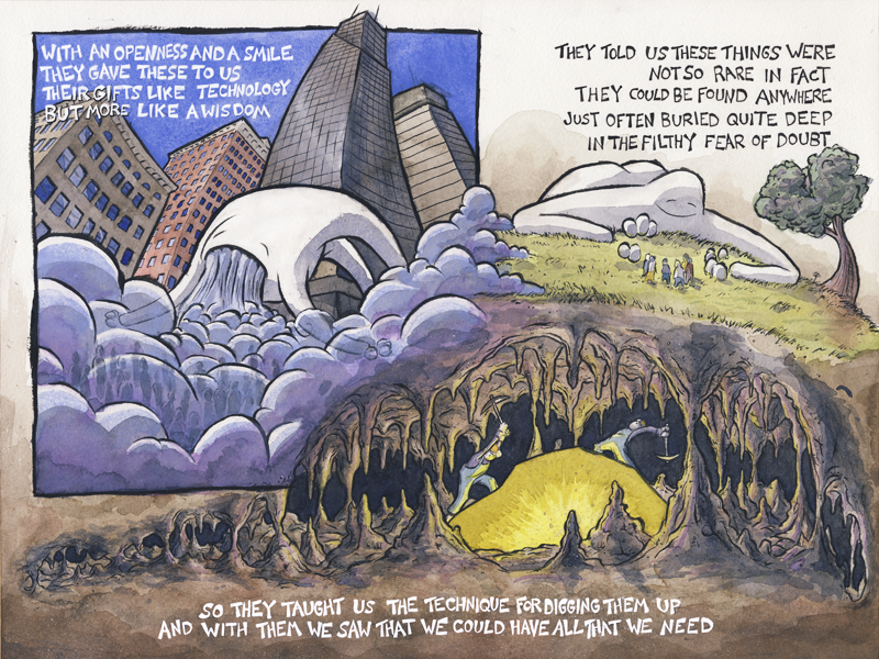 3. STEPHEN HALKER, one of the original Meathaus gang, works mostly in advertising and illustration. People will be sad to hear that after they read his gorgeous two page strip.
