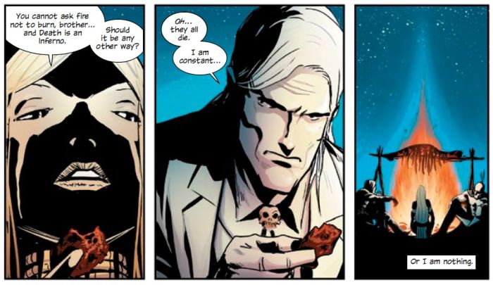 Which I think is why you just want to stay in this world a little while longer, which is not something you normally say about a horror story. In its essence, this comic is about learning forgiveness, for yourself and others. It denies none of the darkness, the selfishness and hard-heartedness and grief of its characters, but it finds ways to redeem them all. The story itself is pure pulp, but the characters are shaded & complex, good souls shrouded in shadow and cold hearts woken by love. It portrays a world as contradictory, as hopeful and as fallen as the one we live in. For all the talk of demons and dark magic, nothing in LOCKE & KEY is black & white.