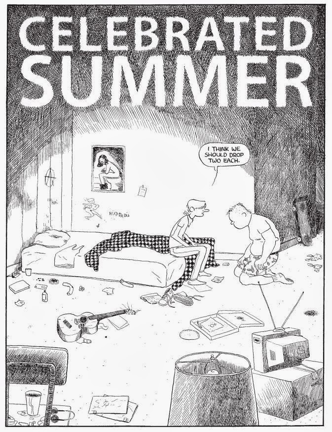 Charles Forsman’s quietly moving new book CELEBRATED SUMMER is essentially plotless. Two teenagers drop acid and drive around. That’s the whole story. There are no revelations along the way — their friendship doesn’t go through any changes, there’s no character arc. They just drive, from the arcade to the beach to the convenience store, and try to figure out whether they’re having any fun. Then they go home. It’s all rendered in Forsman’s punk-Hergé micron style, where the clear line of Kevin Huizenga meets the scratchy cross-hatching of Chester Brown.