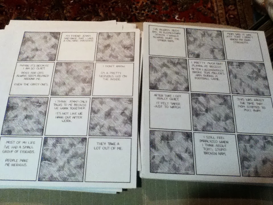 One panel simply says “I’ve always been big. In elementary school I would always hurt the other kids.” As the story moves we get more of a sense of Wolf and his withdrawal, his absent waywardness a scrim behind which to hide his anxiety and anguish, even from himself.