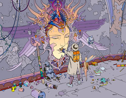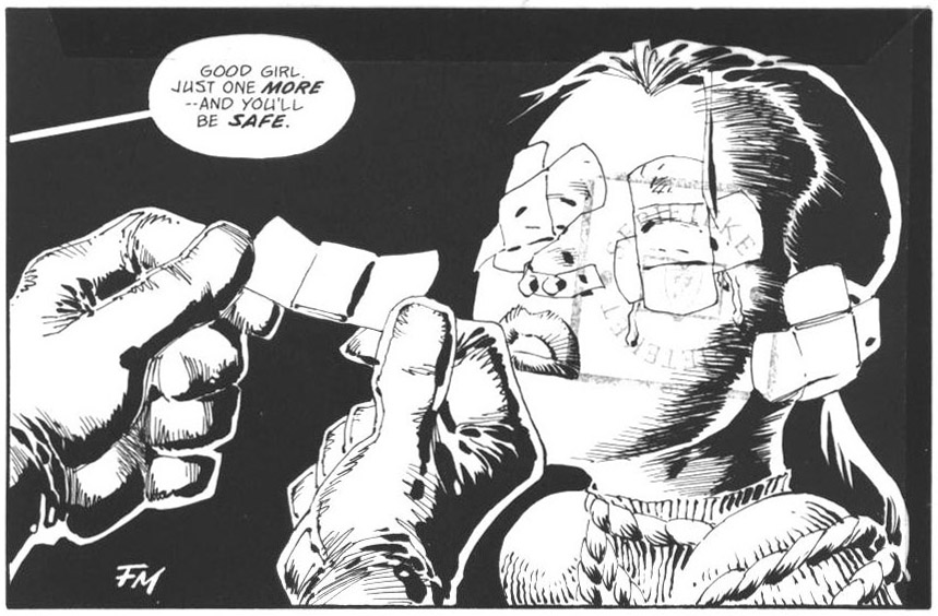 i could probably write a 1000 words on how much i loved, and still love, the two gumby books arthur adams did in the 80’s. here arthur employs a slightly less ornate style than usual for him at the time, and the result is a delightfully pure cartoony look. even the little odds & ends arthur drew here–a bio pic of him as a scarecrow, a pin-up of gumby & pokey riding a dinosaur–are fantastic. these should be reprinted in a proper edition, not the sad shit show of a book like the digest version that came out a few years back.