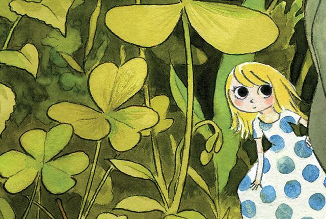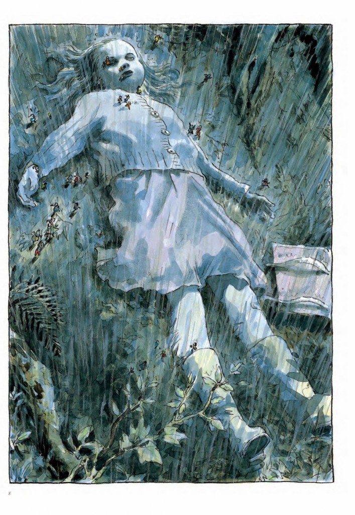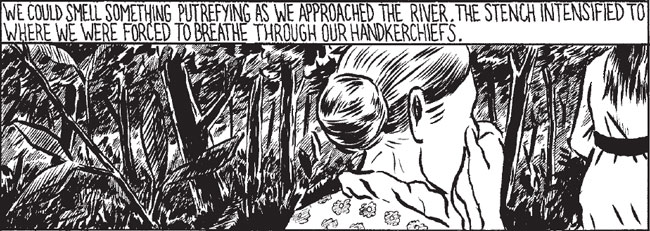 This is wilderness at its most gorgeous and frightening. The lush simplicity of these pencil & watercolor illustrations (credited to Kerascoet, which is a pen name for the Parisian artists Marie Pommepuy and Sébastien Cosset) are sumptuously appealing, with their rich colors and delicate play of light and shadow, but they are unflinching in the speed and casualness with which they shade into terror and violence. There is a smiley-face painted over everything, from a girl who’s poisoned by a plant and watches her body revoltingly balloon and malform, to the children playing ticklishly in the maggot fields. There is something otherworldly and profoundly unsettling about the giggling carelessness with which they greet the ravages of nature and society, and the storytelling and gorgeous artwork combine to keep you constantly off-balance in this perfectly realized, rapturously decaying universe.