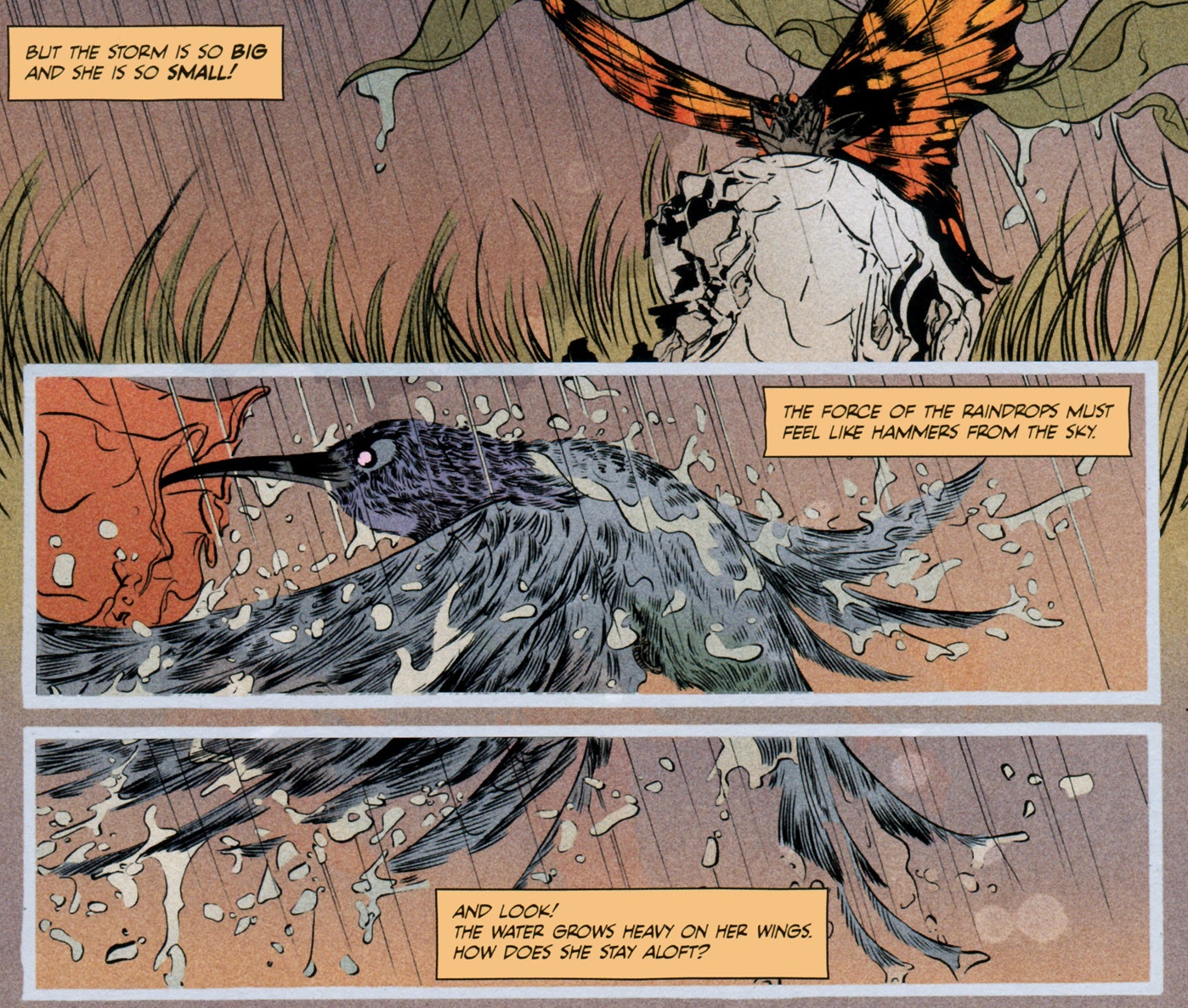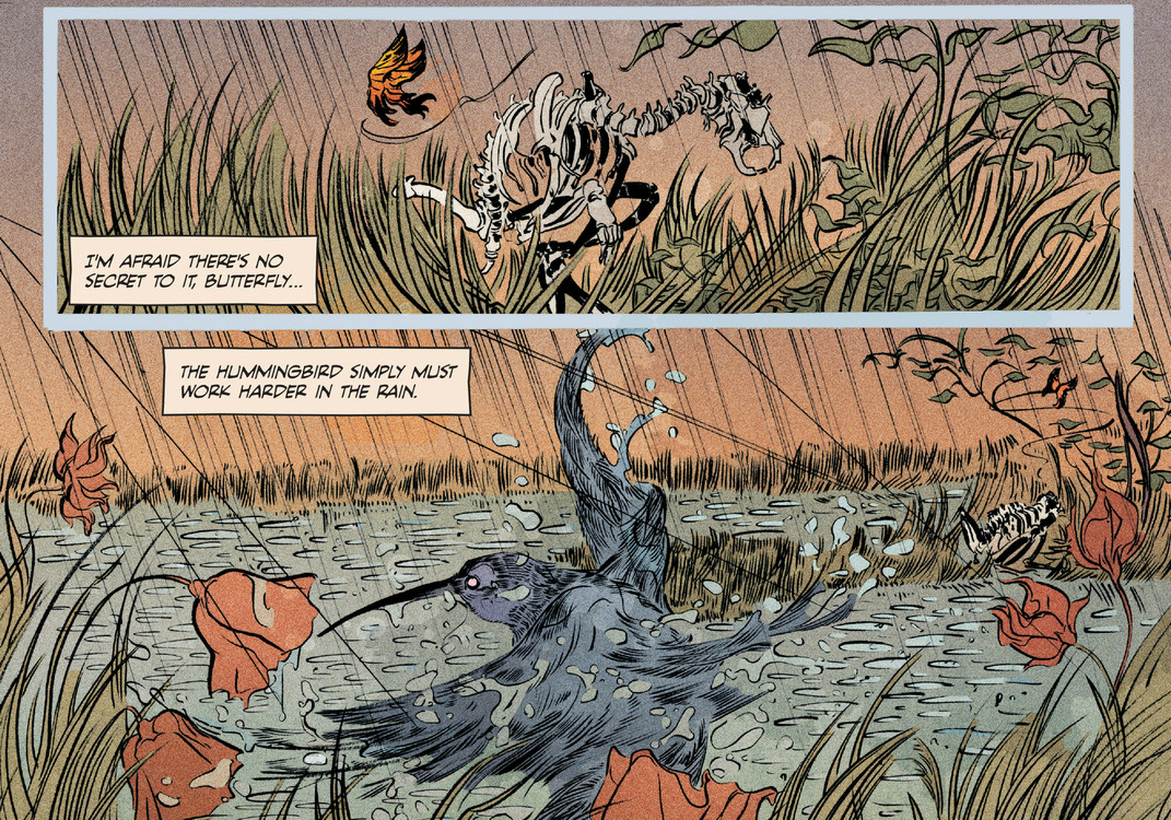 Finally, as the stability of the story’s diegetic reality holds on by the thinnest of threads, it begins to feel that Sherwood is the source of everything — all pain, all hope, all magic, all beauty and hatred and decay. The many worlds of THE WRENCHIES are just a pile a broken glass, looking back in glinting shards at their creator and perceiver. Universes, real and fictional, are only mirrors. They reflect back exactly what you put in. Sherwood put in everything; so did Farel. And they both reaped the whirlwind.