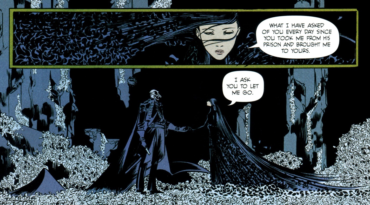 DeConnick’s script, too, favors off-kilter storytelling and fractured rhythms, dropping us into an already-unfolding narrative with almost no context, barreling forward and gradually filling us in with hints, flashbacks, and recollections, letting us sink or swim. Reading it as a monthly book I found it difficult to follow to the point of frustration. Having it all in one place, that weakness can be read as a strength — here is a book that demands your full attention, a book with no course charted through its pleasures and dangers. It wants to be puzzled over and figured out. Its joys are not the joys of suspense, or of plot at all — it operates on a poetic plane, in a mythic mode of storytelling.