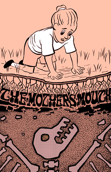 Like in the work of Chris Ware, the towering ambition of the formal approach plays brilliantly off the smallness and mundanity of the story. Virginia and Dick are stuck in prisons of their own device while the vast universe, impossibly beautiful and frightening, spins around them. THE MOTHER’S MOUTH explores huge and hopeful ideas about Dharmic interconnectedness, universal mirroring and infinite regression in a tale of badly damaged people, lost souls shrouded in scar tissue.