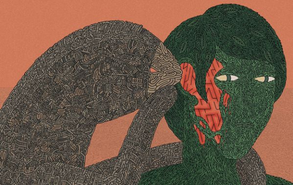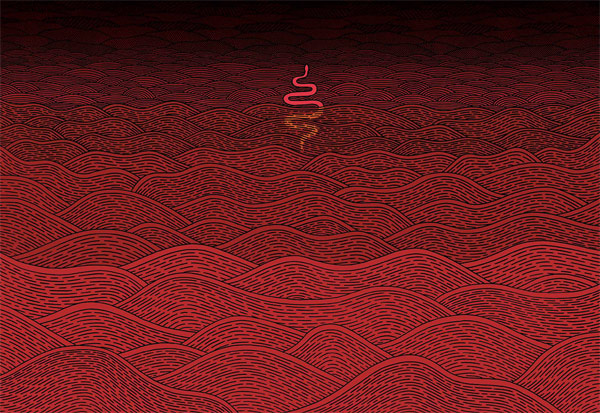 Among the things it’s documenting are: motherboards and root systems; almond-eyed aliens; snakes made of snakes; mushroom clouds trees with trunks of tangled red veins; the exploitation, subversion and destruction of a bountiful, frightening planet; insectoid mandalas, third eyes, astral projections; puppets, puppetmasters, secret societies; shadows and distorted reflections; the ways the writhing, chaotic mass of the natural world fuses to the sleekly ominous silent hum of the digital one.